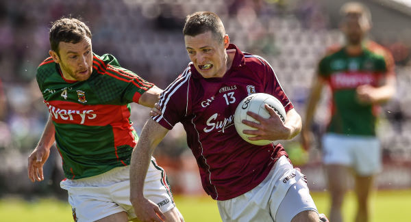 Cillian O’Connor and Andy Moran operated a two-man full-forward line early on, the latter kicking a delightful opening score from a near-impossible angle. The challenge for the Galway full-back line grew taller when Aidan O’Shea moved inside, drawing four first-half frees – all converted by O’Connor.