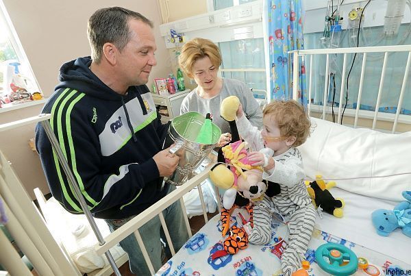 Clare manager Davy Fitzgerald, along with captain Patrick Donnellan and fellow players David McInerney, Padraic Collins, Colin Ryan, Pat O'Connor and Brendan Bugler arrived at the hospital on Dublin's Southside after 11am for the customary All-Ireland champions post final visit.