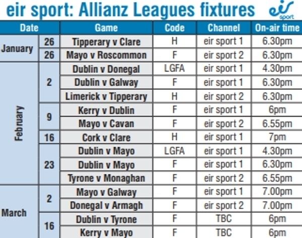 Mayo begin their campaign at home to Roscommon on Saturday week in Castlebar. O’Connor won’t make it after undergoing knee surgery in December and should be back training at some stage next month.