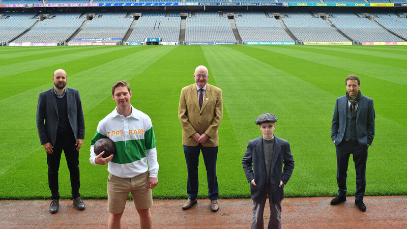 Actors Barry John Kinsella, front left, who played the role of Michael Hogan and Jack Galvin, who played the role of William Robinson, two of the 14 victims of Bloody Sunday in a series of short films by the GAA, in the company of journalist Michael Foley, left, Uachtarán Chumann Lúthchleas Gael John Horan and musician Colm Mac Con Iomaire at the launch in Croke Park of a special range of initiatives by the GAA to focus on the memory of Bloody Sumday. Picture: Brendan Moran/Sportsfile