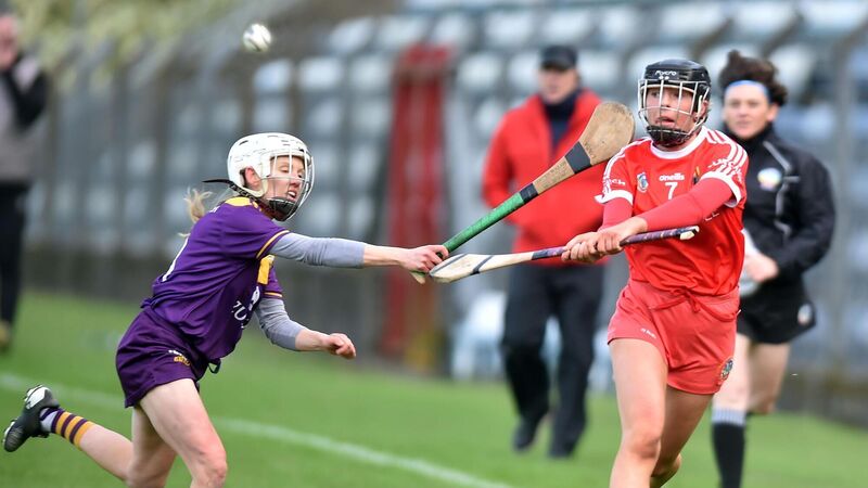Cork's Laura Hayes shoots from Wexford's Linda Bolger during the Liberty Insurance All-Ireland Senior Camogie Championship at Pairc Ui Rinn. Picture: Eddie O'Hare