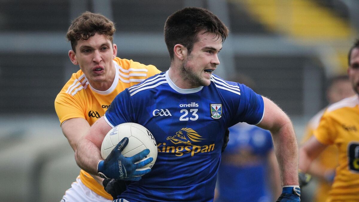 Cavan's Thomas Galligan and Ruari McCann of Antrim. Picture: INPHO