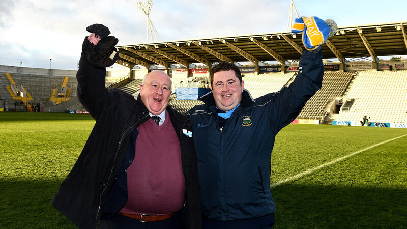 Tipperary manager David Power with his dad Michael at Páirc Uí Chaoimh. Photo by Ray McManus/Sportsfile