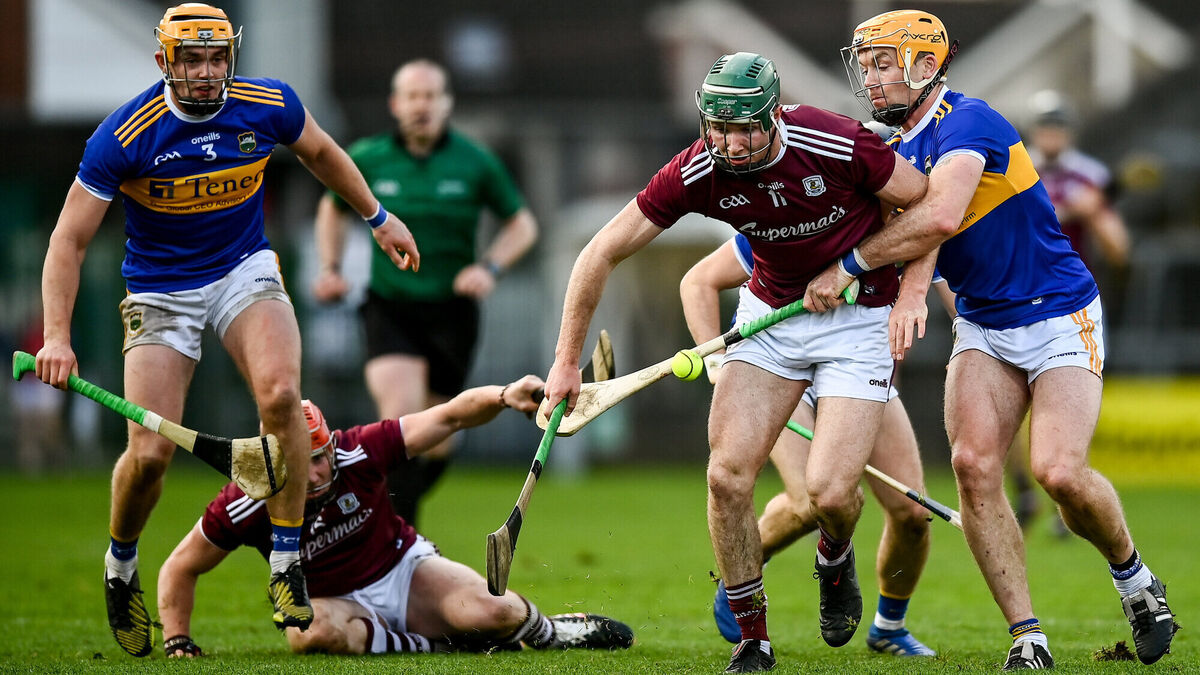 Galway's Cathal Mannion in action against Pádraic Maher of Tipperary at LIT Gaelic Grounds. Photo by David Fitzgerald/Sportsfile
