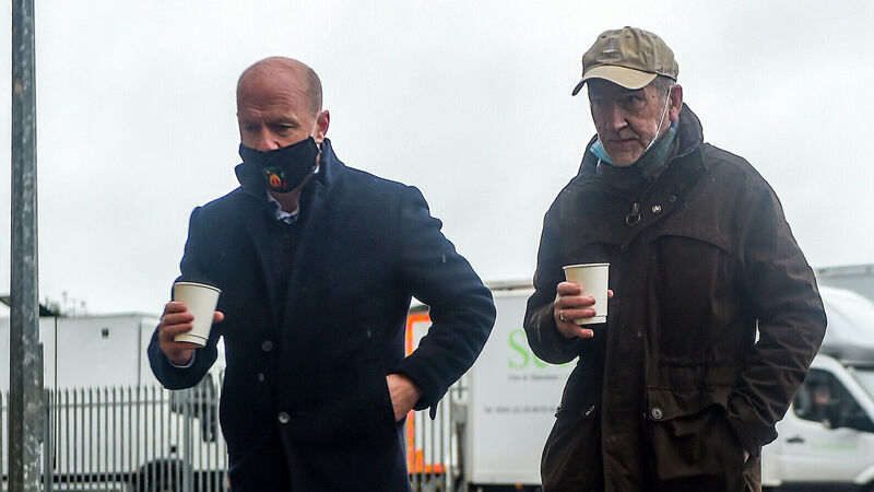 Sky Sports GAA analyst Peter Canavan and his former Tyrone manager Mickey Harte at the Athletic Grounds in Armagh. Photo by Philip Fitzpatrick/Sportsfile
