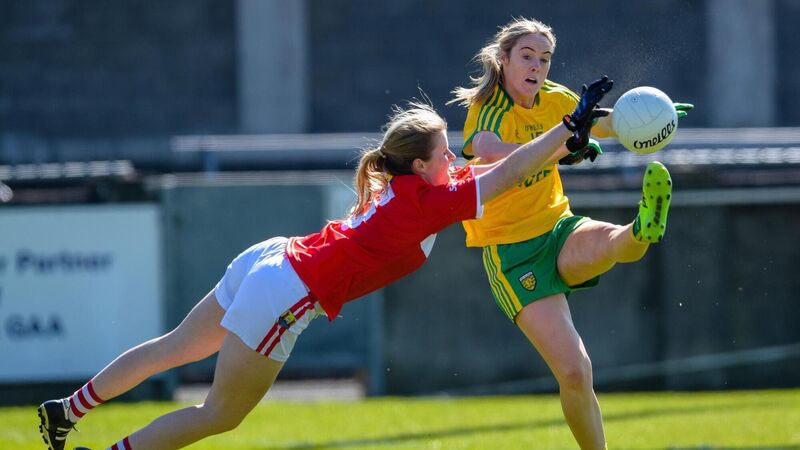 Cork’s Roisin Phelan blocks Yvonne McMonagle of Donegal. Phelan will be key to the Rebels if they are to regain the All-Ireland title on Sunday. Picture: INPHO/Tom Beary