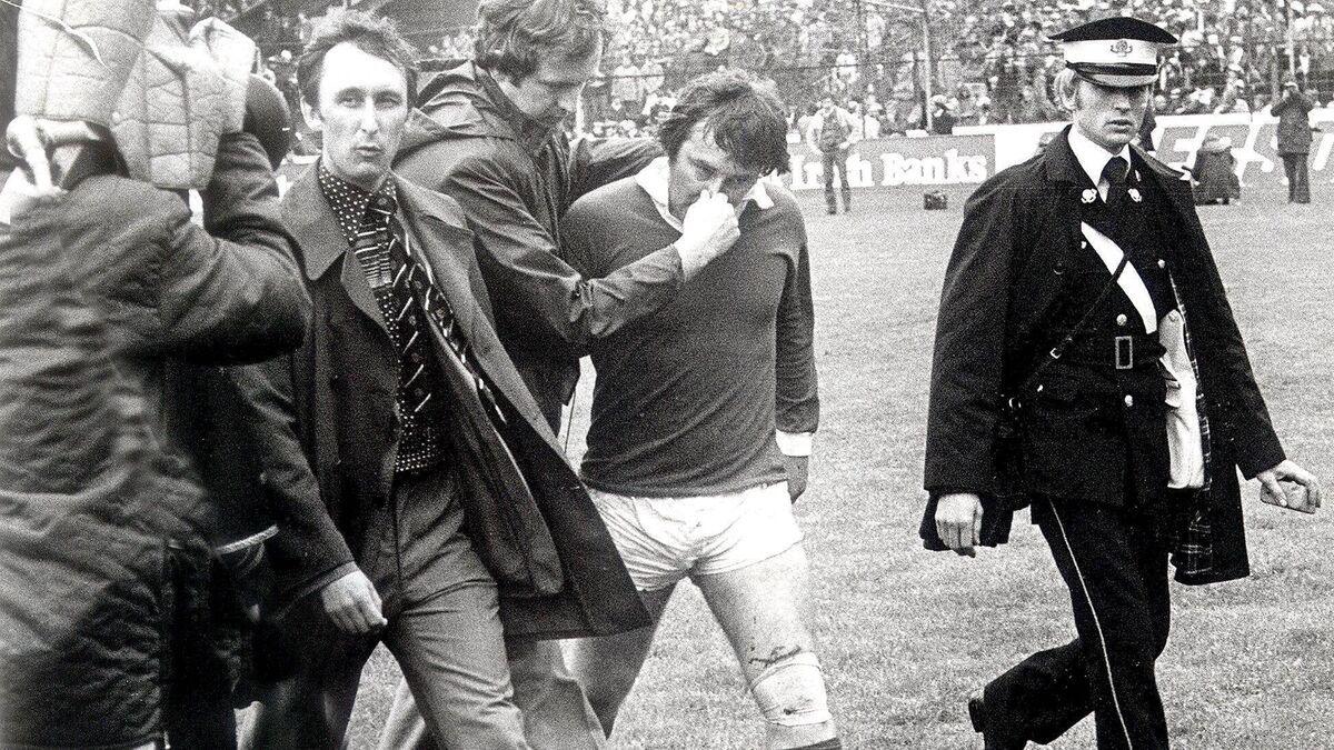 In the pre-match puck around prior to Cork's 1977 All-Ireland Hurling final v Wexford, Sean O'Leary suffered a nose injury as a result of being struck by a sliotar. Only 14 Cork players paraded before the match as Seanie was rushed back to the dressing room by Dr Con Murphy and Frank Murphy.