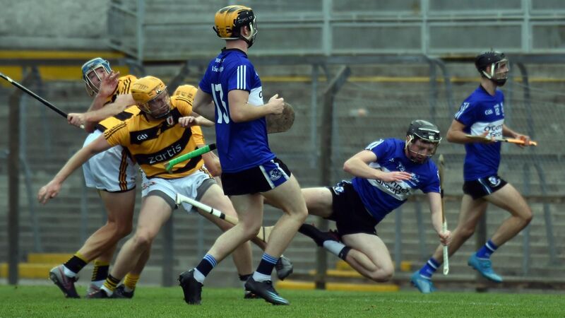 Sars' Jack O'Connor is fouled as he heads for goal against Na Piarsaigh during this evening's Co-Op Superstores Cork PSHC tie at Páirc Uí Rinn. Eddie O'Hare
