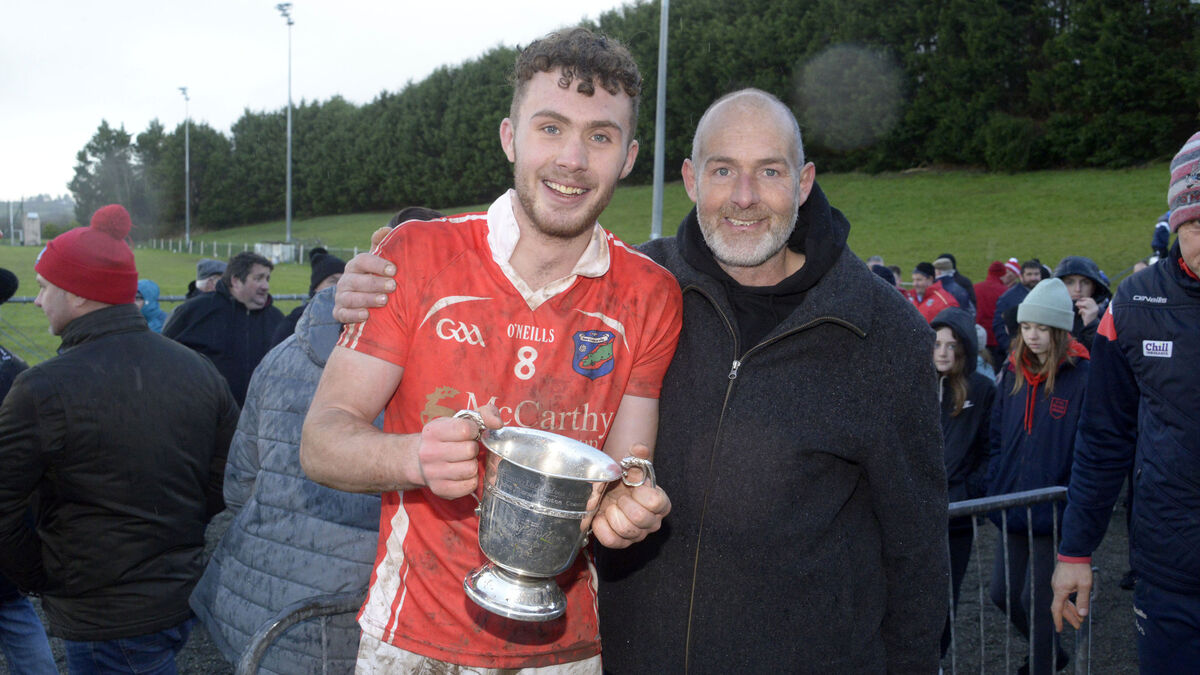 Pictured at the Rebel Óg U18 Premier 1 FC final at Dunmanway on Saturday was the winning Beara team captain Fintan Fenner and his dad Paul. Picture Denis Boyle