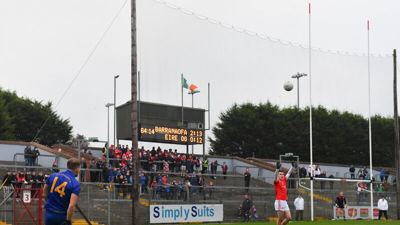 19 December 2021; Steven Sherlock of St Finbarr's scores a late point for his side during the AIB Munster GAA Football Senior Club Football Championship Semi-Final match between St. Finbarr's and Éire Óg Ennis at Pairc Ui Rinn in Cork. Photo by Eóin Noonan/Sportsfile