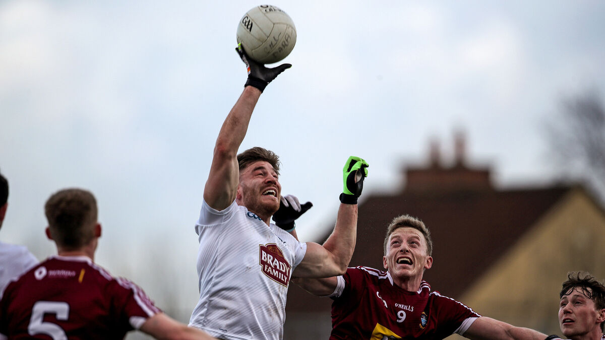Kildare's Kevin O'Callaghan and Ray Connellan of Westmeath jump for the ball