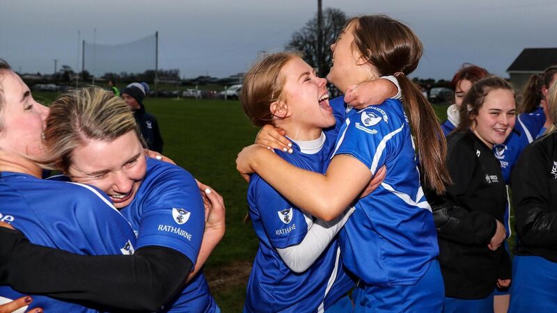 Raharney's Liz Raleigh and Coaimhe McAteer celebrate after the game
