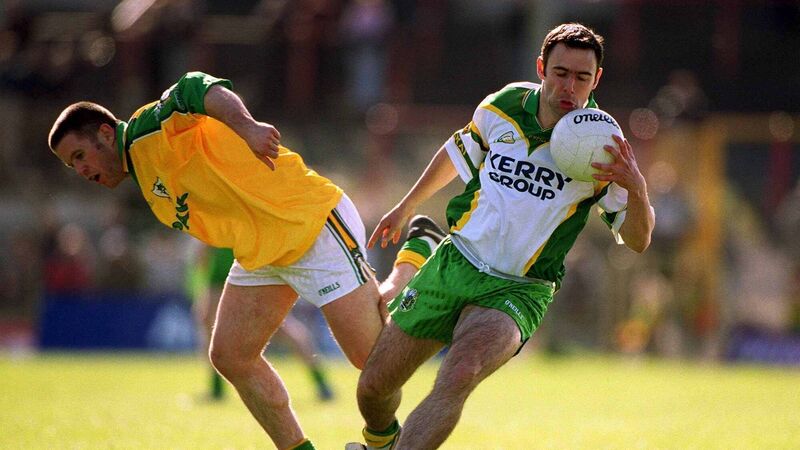 14 April 2002; Ian Twiss of Kerry gets past Mark O'Reilly of Meath during the Allianz National Football League Division 2 Semi-Final match between Meath and Kerry at the Gaelic Grounds in Limerick. Photo by Matt Browne/Sportsfile