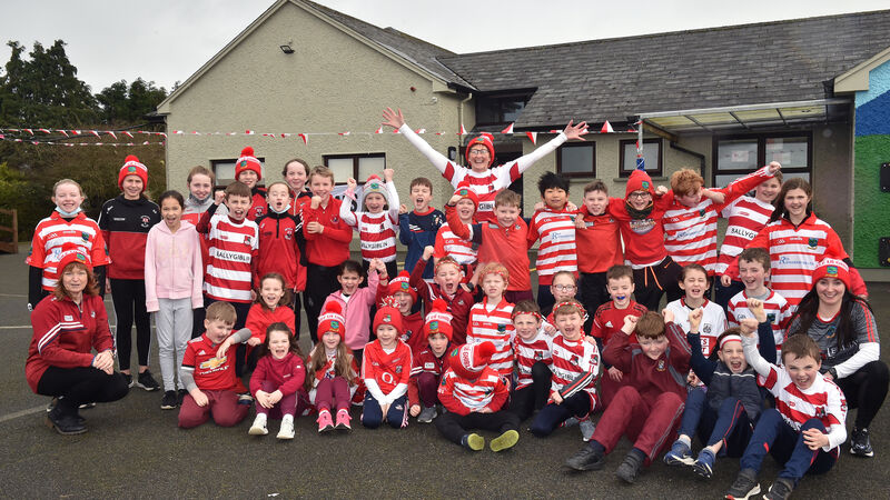 With Ballygiblin heading to Croke Park to play Mooncoin in the All-Ireland Junior Club hurling final, supporters at the local national school with connections to members of the team held a colours day. Included are principal Mary Collins, whose two sons Michael and Jack are on the team, along with staff members Marie Mullins, sister of James Mullins, and Rita Roche, a cousin of Ryan and Kieran Donegan.