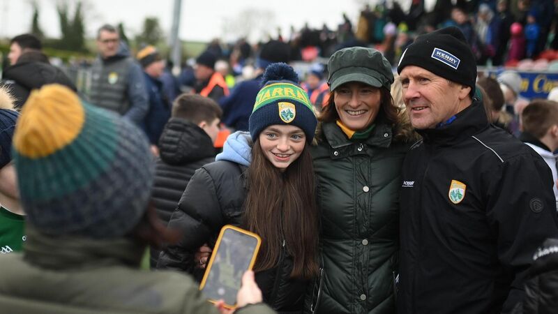 Kerry manager Jack O'Connor poses for a photograph with supporters after the Allianz Football League Division 1 win over Monaghan at Inniskeen Grattans GAA Club
