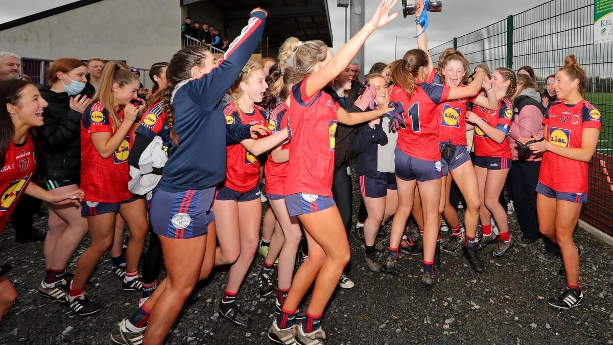 St. Mary's Midleton players celebrate their winover Cashel CS in the Lidl Munster LGFA PPS Senior A Final at Banteer Community Sportsfield Astroturf in Co. Cork. Picture: Jim Coughlan.