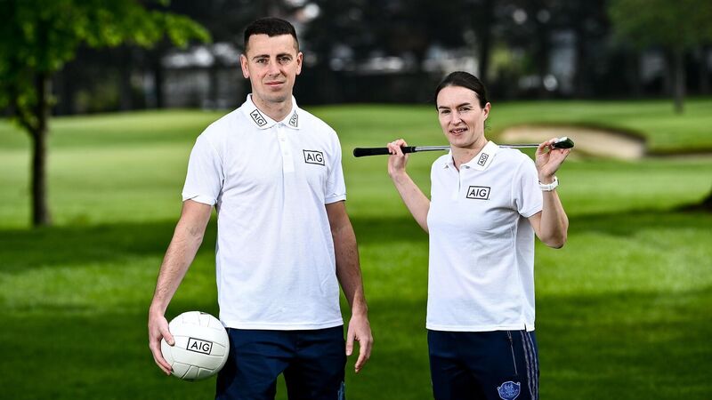 Dublin footballers Cormac Costello and Sinéad Aherne in attendance at the launch of this year's AIG Men's and Women's Cups and Shields and AIG Men's and Women's Irish Amateur Close Championships at Elm Park Golf Club in Dublin. AIG also revealed online discounted offers on new car and home insurance policies for Golf Ireland members - for more details go to www.aig.ie/golfer or call 1800407407. Photo by David Fitzgerald/Sportsfile