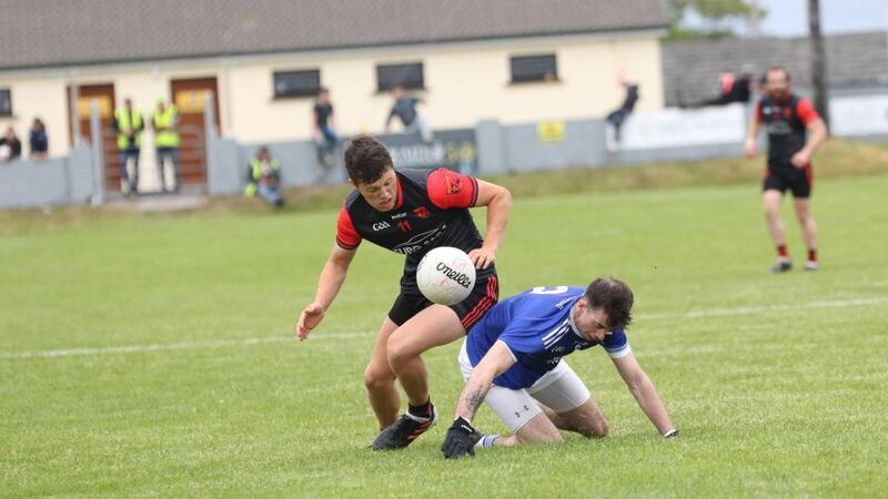 Pádraic Ó Comáin, Béal Átha an Ghaorthaidh evades grounded tackler. Pic: Seán Ó Mainnín