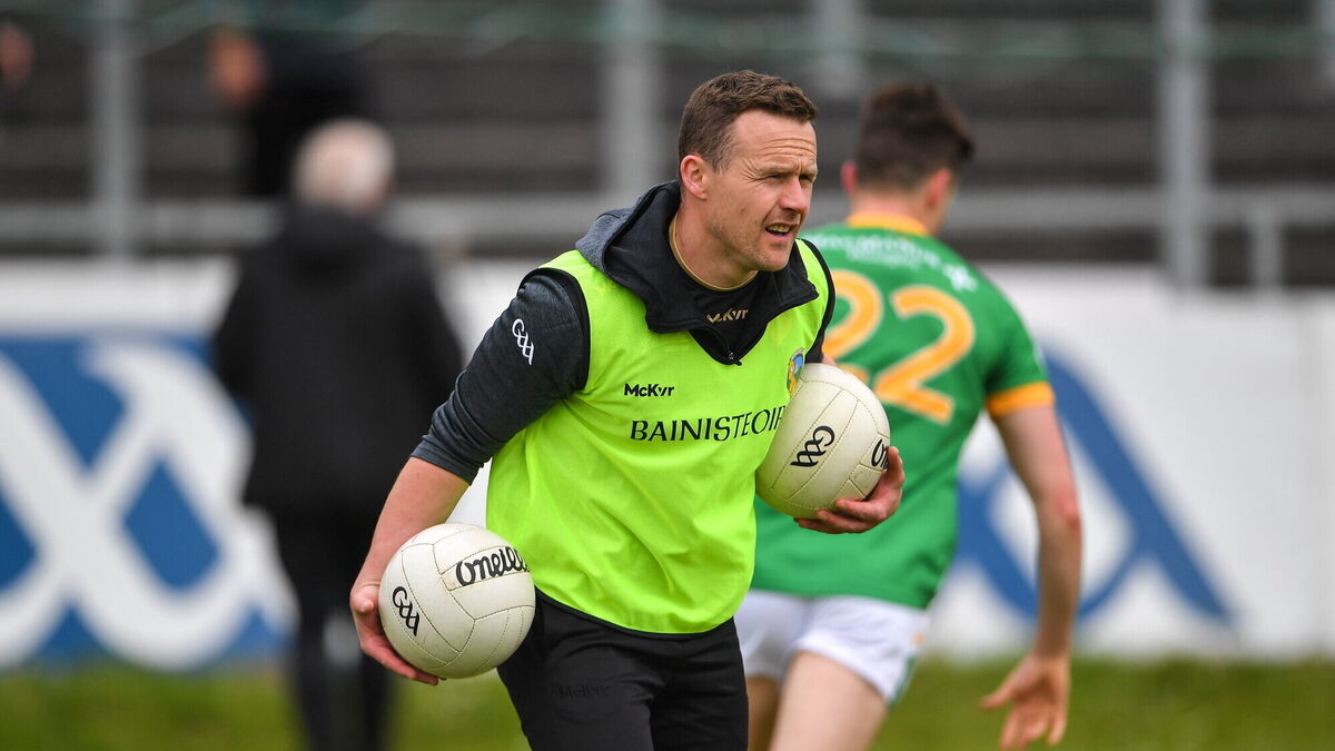 5 June 2022; Leitrim manager Andy Moran talks to his players before the start of the Tailteann Cup Quarter-Final match between Leitrim and Sligo at Avant Money Páirc Seán Mac Diarmada, Carrick-on-Shannon in Leitrim. Photo by Ray Ryan/Sportsfile