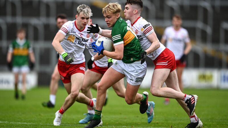 FORWARD-THINKING: Odhran Ferris of Kerry in action against Barry McMenamin, left, and Eoin McElholm of Tyrone. Photo by David Fitzgerald/Sportsfile