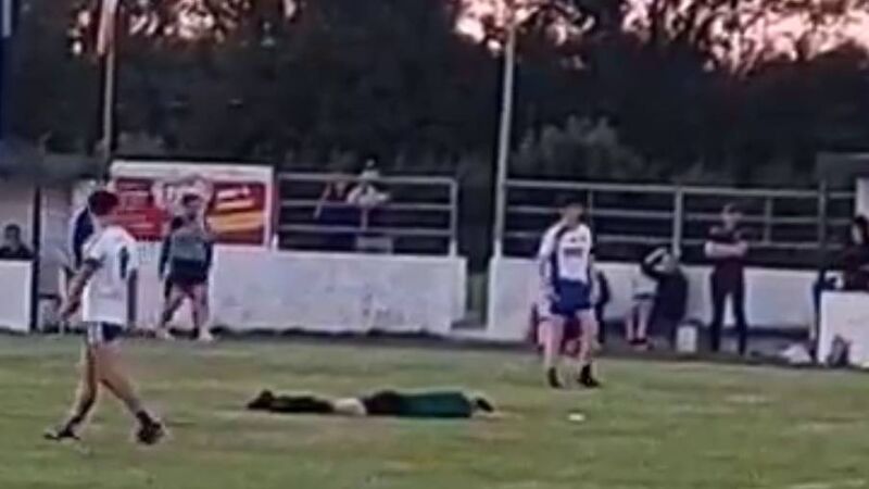 Referee lying injured during the St Aidan’s v St Dominic’s game