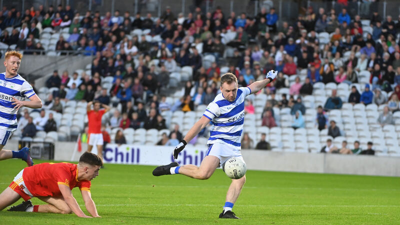 ON THE MARK: Michael Hurley, Castlehaven hits low and hard to score a goal against Mallow.