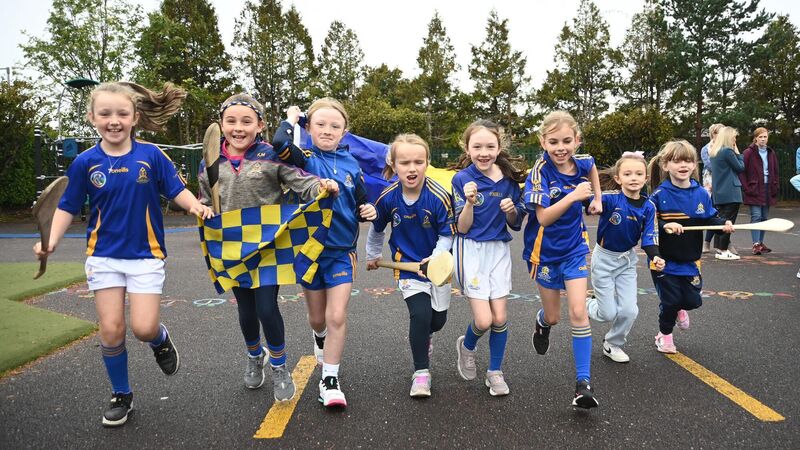 Jodie, Kyra, Katie, Rachael (RACHAEL), Emily, Emily and Emily (3x Emily) and Sophie will be playing during half time at the county hurling final. Boys from Togher Boys NS and girls from Togher GNS in Togher went 'Blue' in support of St Finbarr's (The Barrs) playing in the county final against Blackrock this weekend. Pic Larry Cummins