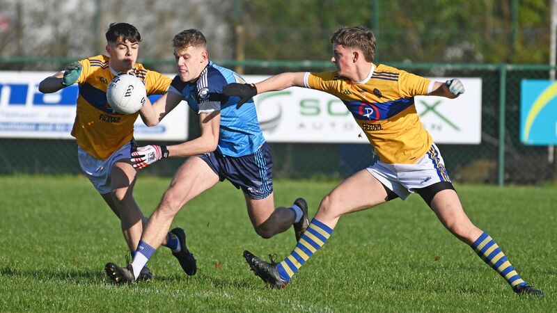 COMEBACK WIN: Clonakilty Community College's Darragh Gough bursts past Tralee CBS' Jake Foley and Colm Browne. Clonakilty came back from a five point deficit to knock out the Kerry heavyweights. Pic: Eddie O'Hare
