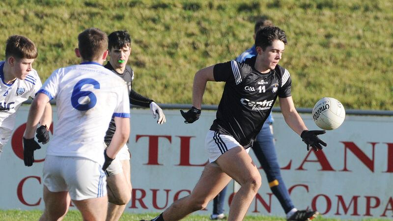 STELLAR SHOOTING: St. Francis College, Rochestown's Sean Coakley soloing goalwards past St. Flannan’s College players Ronan Kilroy and Fionan Tracey in the Corn Uí Mhuirí at Mallow.