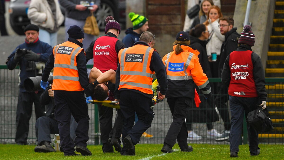 'IT DOESN'T LOOK GOOD': Damien Comer of Galway is stretchered off the field after sustaining an injury during the Allianz Football League Division 1 match between Galway and Roscommon at Pearse Stadium in Galway. Pic: Ray Ryan/Sportsfile