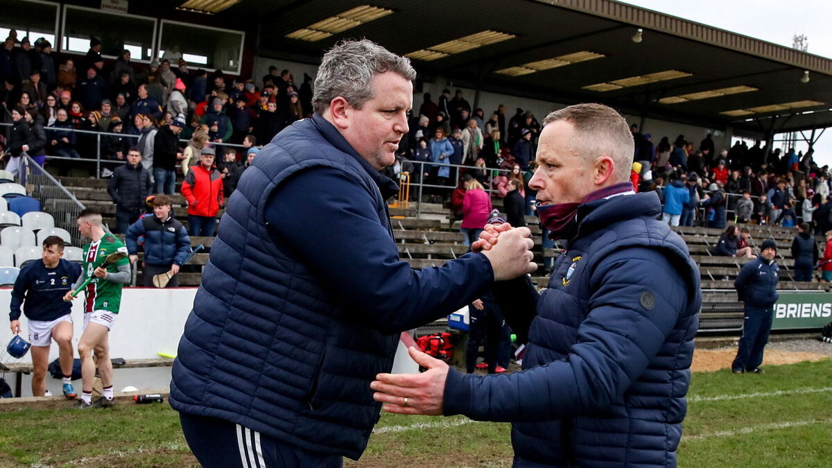 HIGH WIDE TALLY: Wexford manager Darragh Egan shakes hands with Westmeath manager Joe Fortune. Pic: Michael P Ryan/Sportsfile