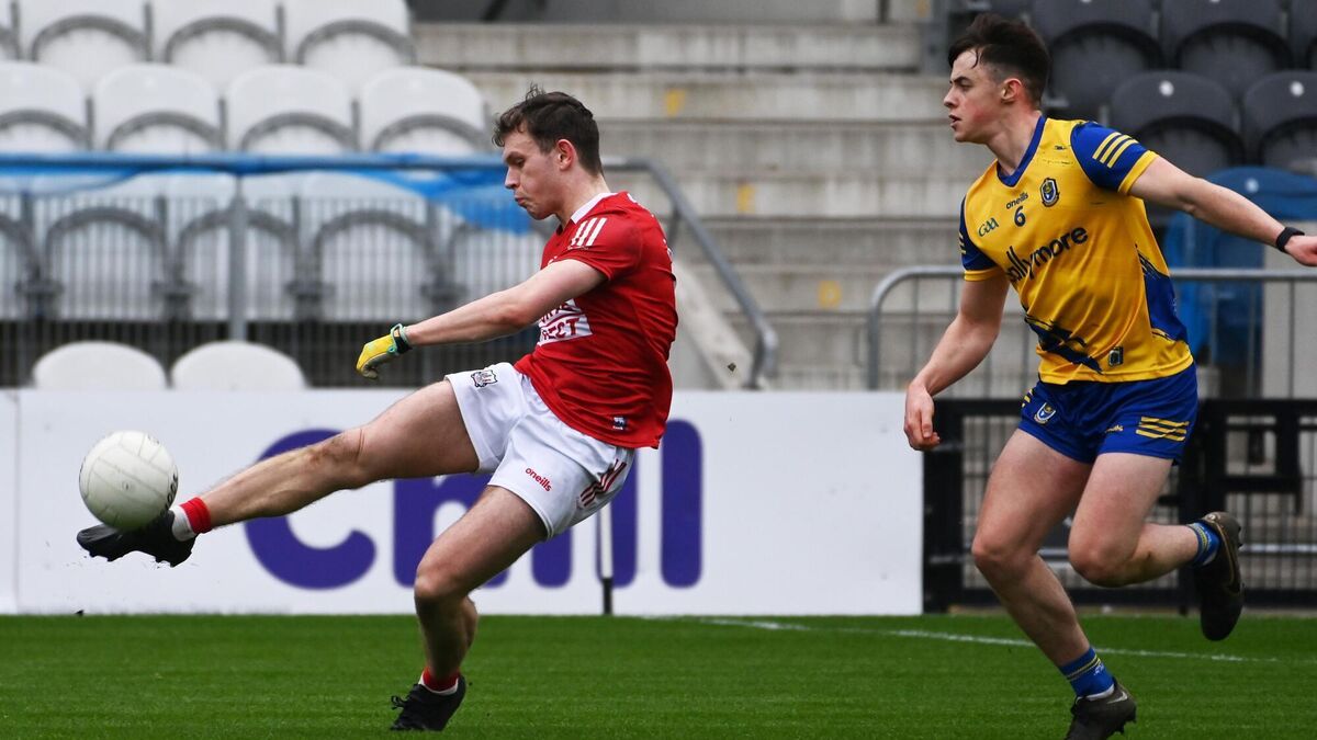 FIRING FORM: Cork's Peadar O'Rourke shoots from Roscommon's Eoin Ward during the John Kerins Cup clashat Pairc Ui Chaoimh. Picture; Eddie O'Hare