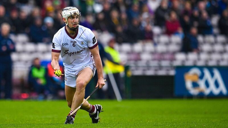 BLINK OF AN EYE: DaithĂ Burke of Galway handpasses the ball during the Leinster SHC Round 1 match between against Wexford at Pearse Stadium in Galway. Pic: Seb Daly/Sportsfile