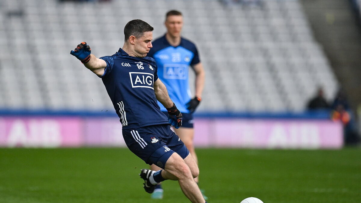 BACK IN BLUE: Dublin goalkeeper Stephen Cluxton kicks a free, which he fails to convert, during the Leinster GAA Football Senior Championship Semi Final match between Dublin and Kildare at Croke Park in Dublin. Pic: Seb Daly/Sportsfile