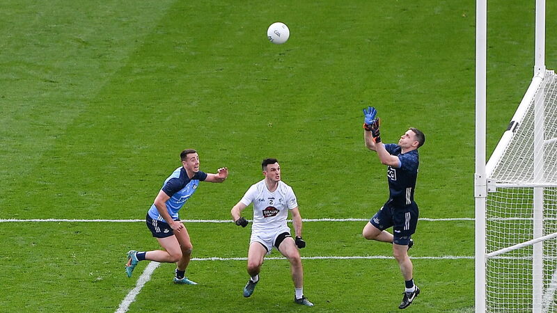 BLUE BOYS: Dublin goalkeeper Stephen Cluxton comes to claim the ball. Pic: Seb Daly/Sportsfile