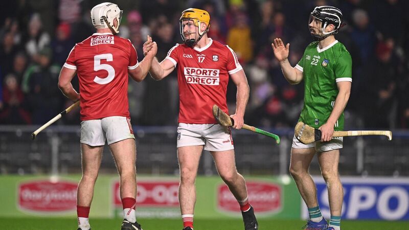 DANGER HERE: Niall O'Leary of Cork, centre, celebrates with teammate Tommy O'Connell after their side's victory over Limerick in the league. Pic: Eóin Noonan/Sportsfile