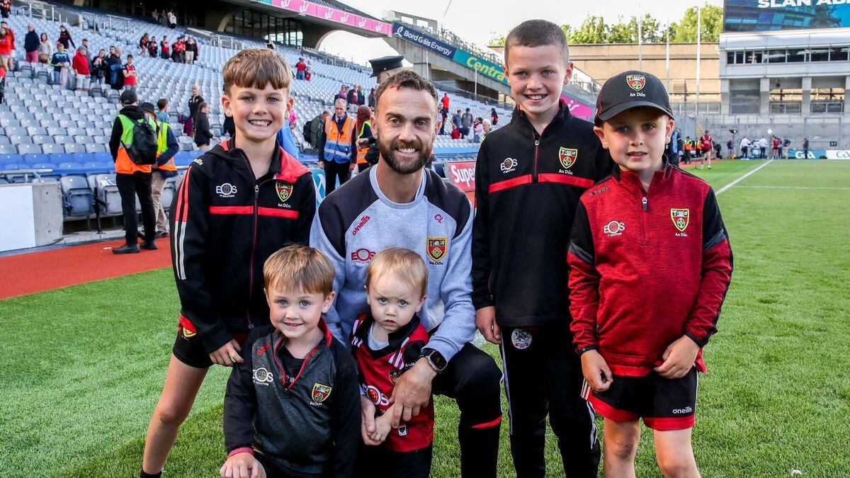 FAMILY AFFAIR: Down manager Conor Laverty with his children after the Tailteann Cup semi-final win over Laois at Croke Park. Pic: Michael P Ryan/Sportsfile