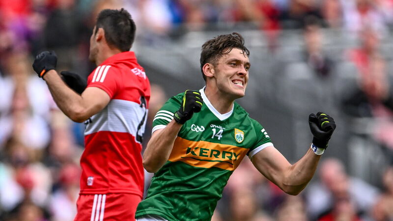 CLICHED IT: David Clifford of Kerry celebrates scoring a late point. Pic: Piaras Ó Mídheach/Sportsfile