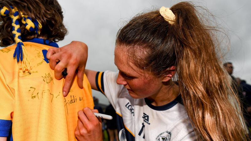 FAN FAVOURITE: Clare's Fidelma Marrinan signs the jersey of a young supporter.Photo by Tom Beary/Sportsfile