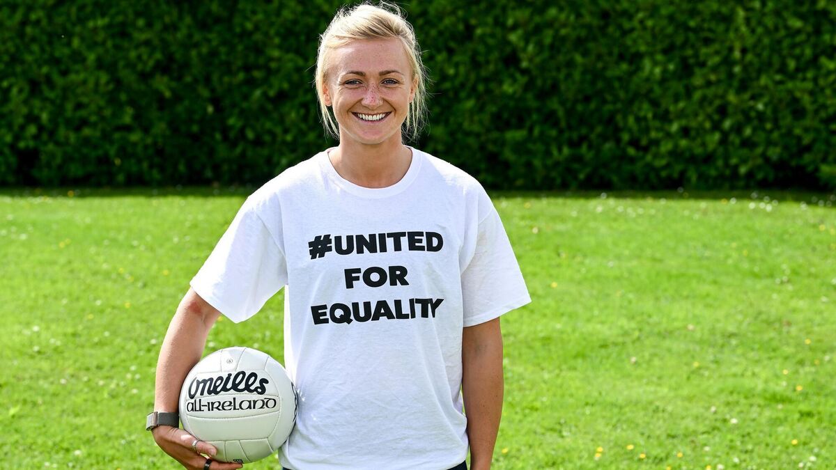 READY FOR BATTLE: Carla Rowe of Dublin wearing a #UnitedForEquality t-shirt at an event organised by players at the Radisson Blu at Dublin Airport ahead of the upcoming All-Ireland Championships semi-finals. Pic: Piaras Ó MÃdheach/Sportsfile