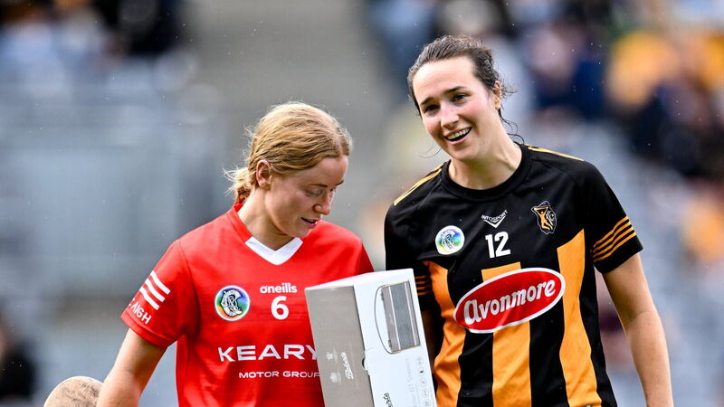Denise Gaule of Kilkennyand Laura Treacy of Cork after the All-Ireland Senior Camogie Championship quarter-final match between Cork and Kilkenny at Croke Park in Dublin. Pic: Piaras Ó Mídheach/Sportsfile