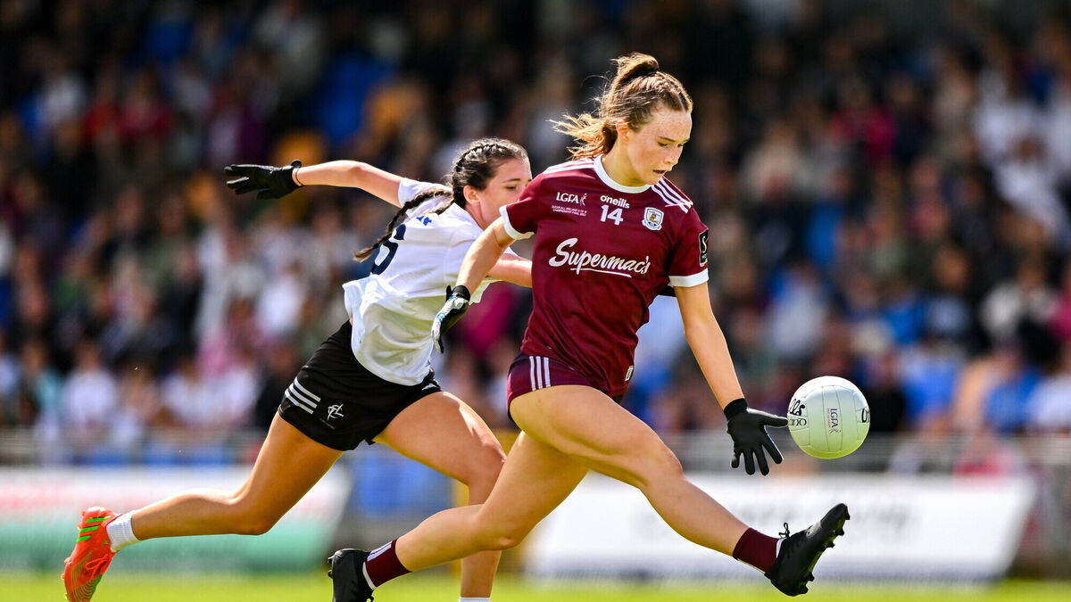 ALL IRELAND CHAMPIONS: Niamh Divilly of Galway in action against Julie Brannigan of Kildare during the ZuCar All-Ireland Ladies Football U18 A final. Pic: Ben McShane/Sportsfile