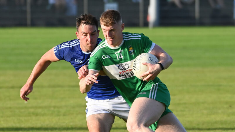 LATE SHOW: Macroom's Alan Quinn takes on Bantry's Billy Foley during the Bon Secours Cork Premier IFC at Ballingeary. Pic: Eddie O'Hare