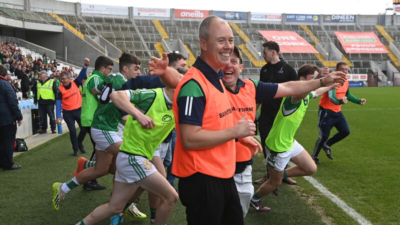 JOYOUS SCENES: Aghabullogue's manager Micheal McGrath celebrates. Pic; Eddie O'Hare