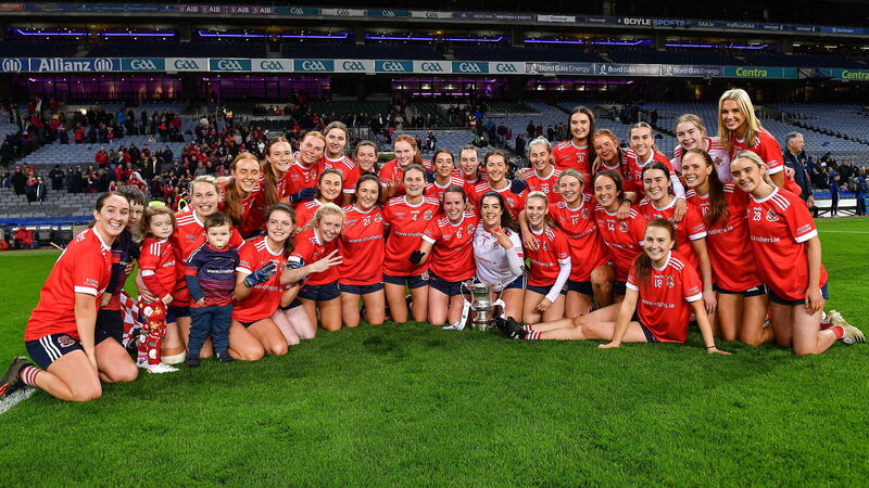 THREE INA ROW: Kilkerrin-Clonberne players celebrate after their side's victory in the Currentaccount.ie LGFA All-Ireland Senior Club Championship final. Pic: Piaras Ó MÃdheach/Sportsfile