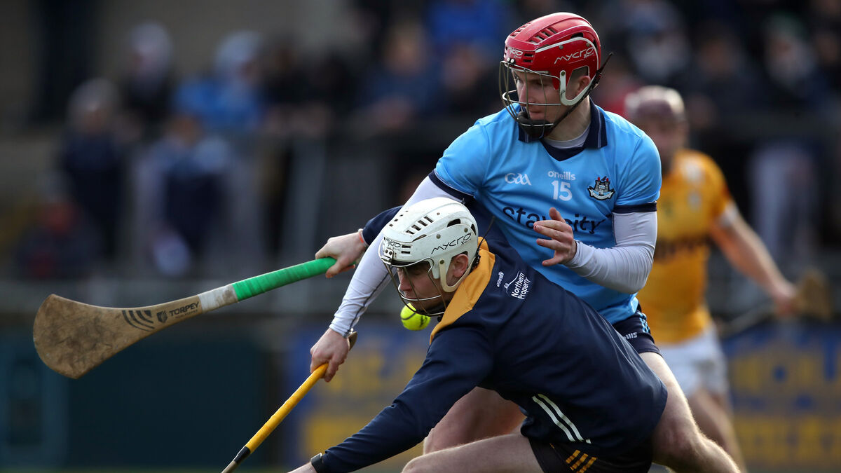 DUBS DOUBLE DELIGHT: Dublin's Liam Murphy tackles Tiernan Smyth of Antrim as the Dubs make it two wins out of two. Pic Credit: Leah Scholes, Inpho.