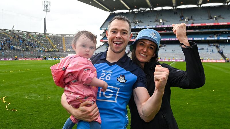 CALLING IT A DAY: Dean Rock of Dublin with his fiancé Niamh McEvoy and their daughter Sadie. Pic: David Fitzgerald, Sportsfile