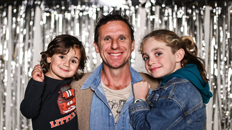 HONOURED: Former Clare hurler Tony Griffin with his children Jesse, age 3, and Jerome, age 8, at the launch of TG4's award-winning Laochra Gael series. Pic: Piaras Ó Mídheach/Sportsfile