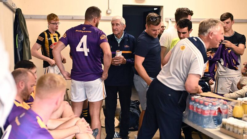 BELONGING: Manager of Jim Bolger's Stars, Liam Griffin, in conversation with former Kilkenny hurler Jackie Tyrell, 4 before the Hurling for Cancer Research harity match at Netwatch Cullen Park in Carlow. Pic: Piaras Ó Mídheach/Sportsfile