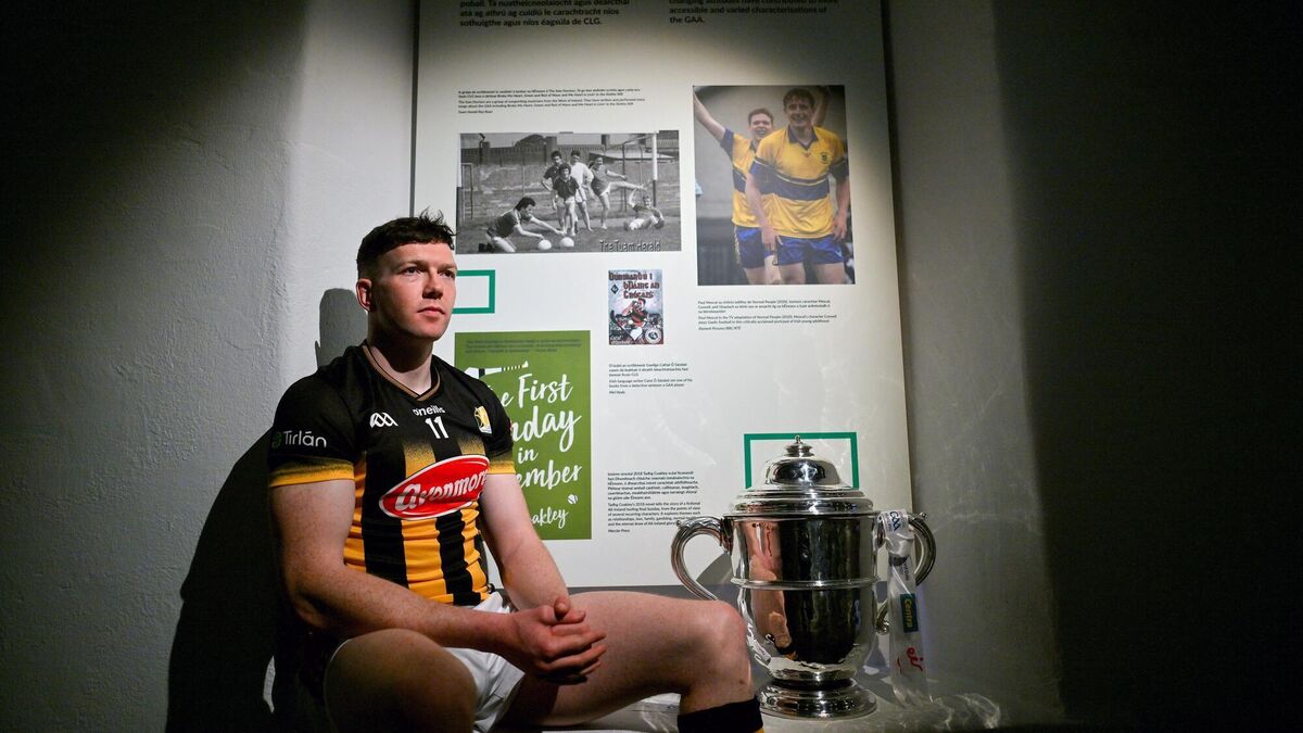 LEAGUE DECIDER: Walter Walsh of Kilkenny poses for a portrait with the Bob O'Keeffe cup at the 'GAA; People, Objects & Stories' exhibition during the launch of the 2024 Leinster GAA Senior Hurling Championship in the National Museum of Ireland Dublin . Photo by Brendan Moran/Sportsfile